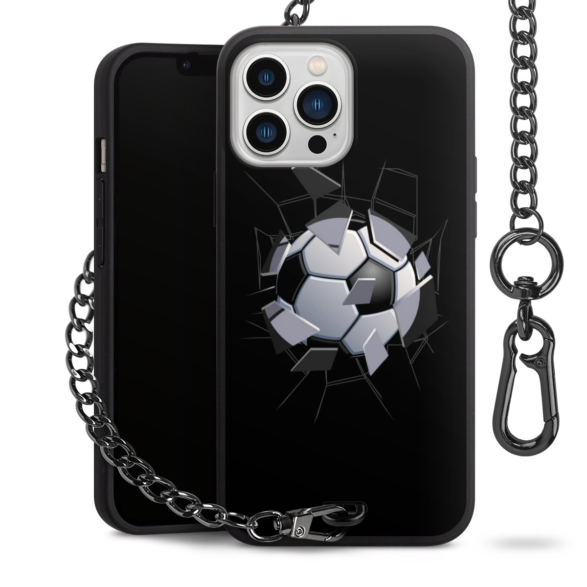 - Mattschwarze Handyhülle mit Metallkette