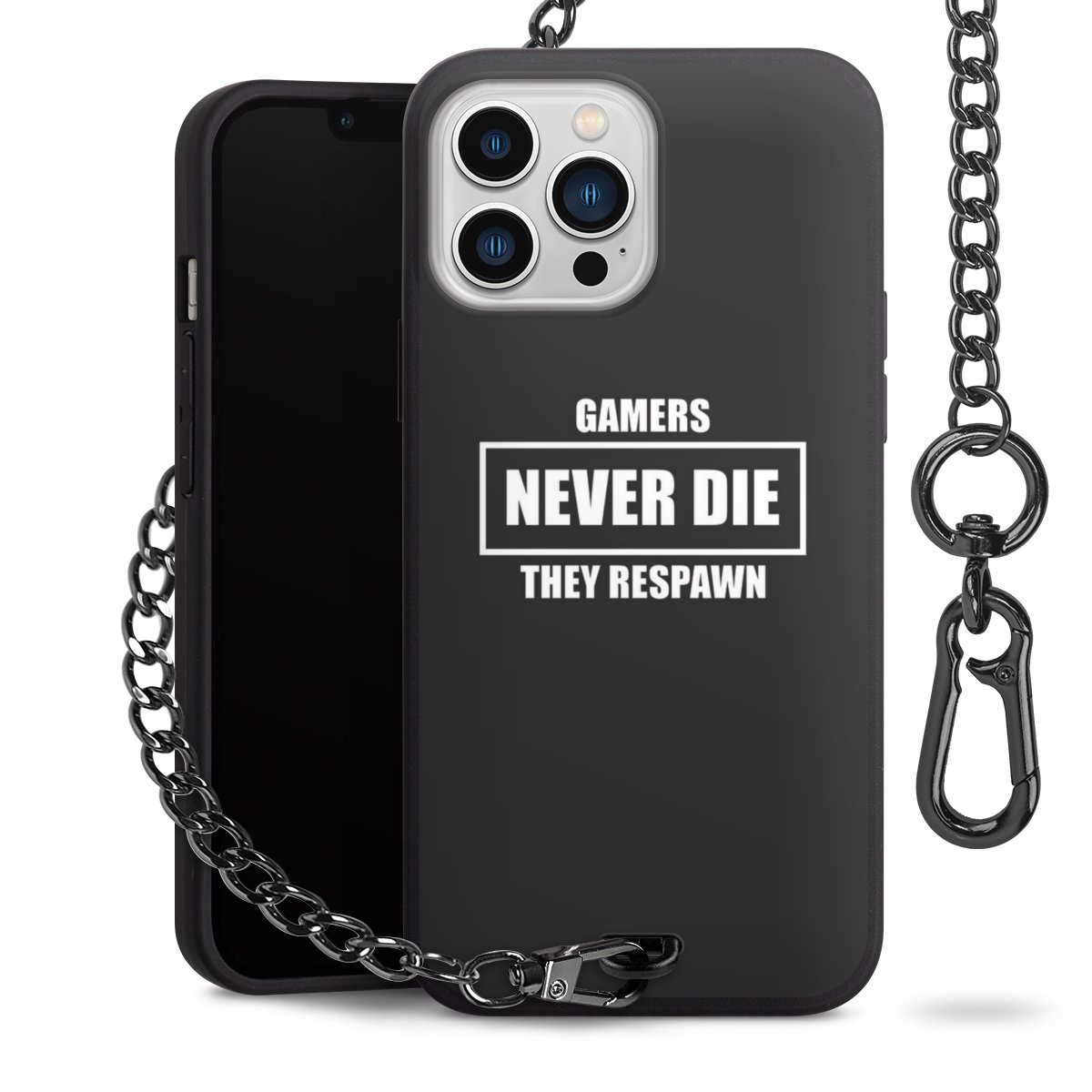 - Mattschwarze Handyhülle mit Metallkette