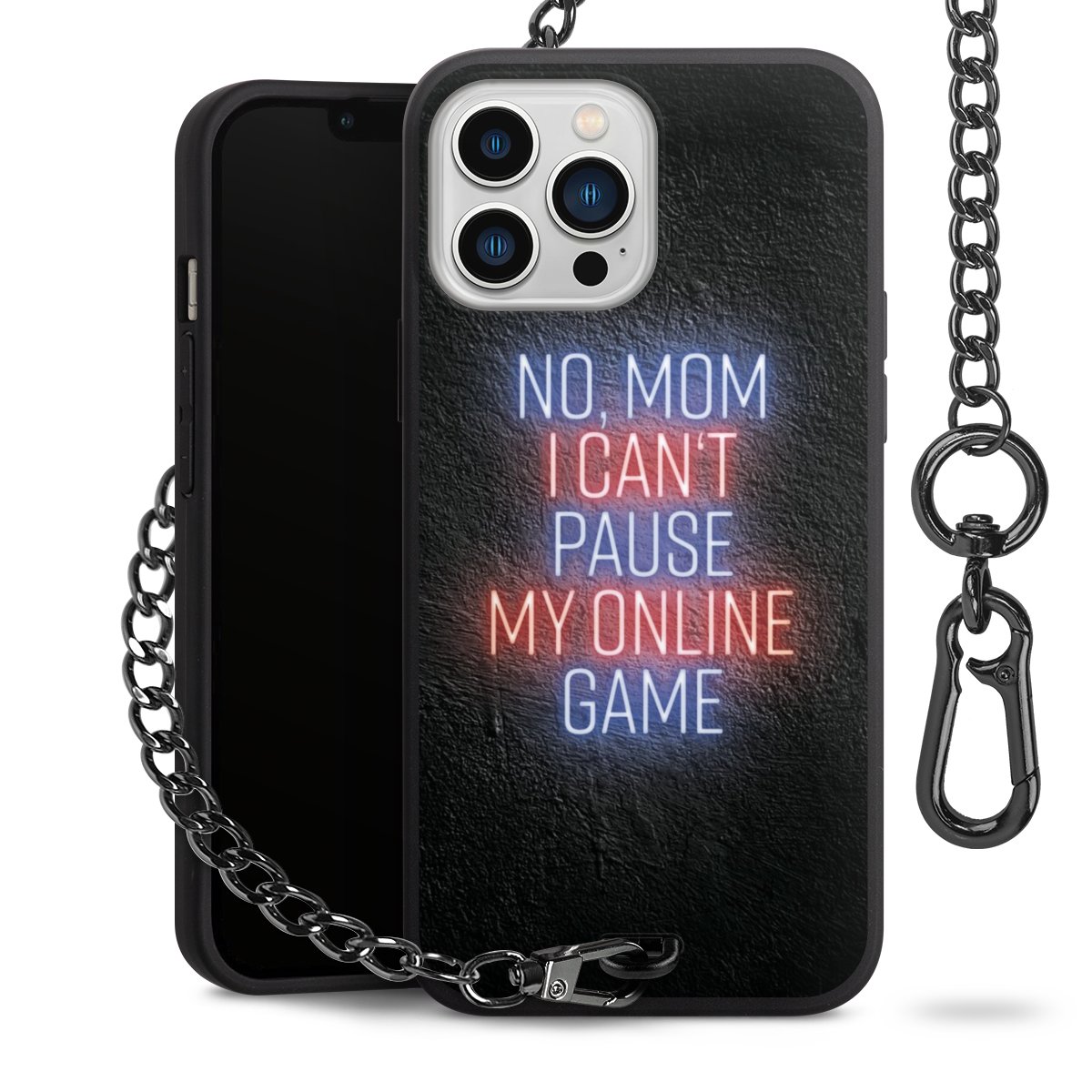 - Mattschwarze Handyhülle mit Metallkette