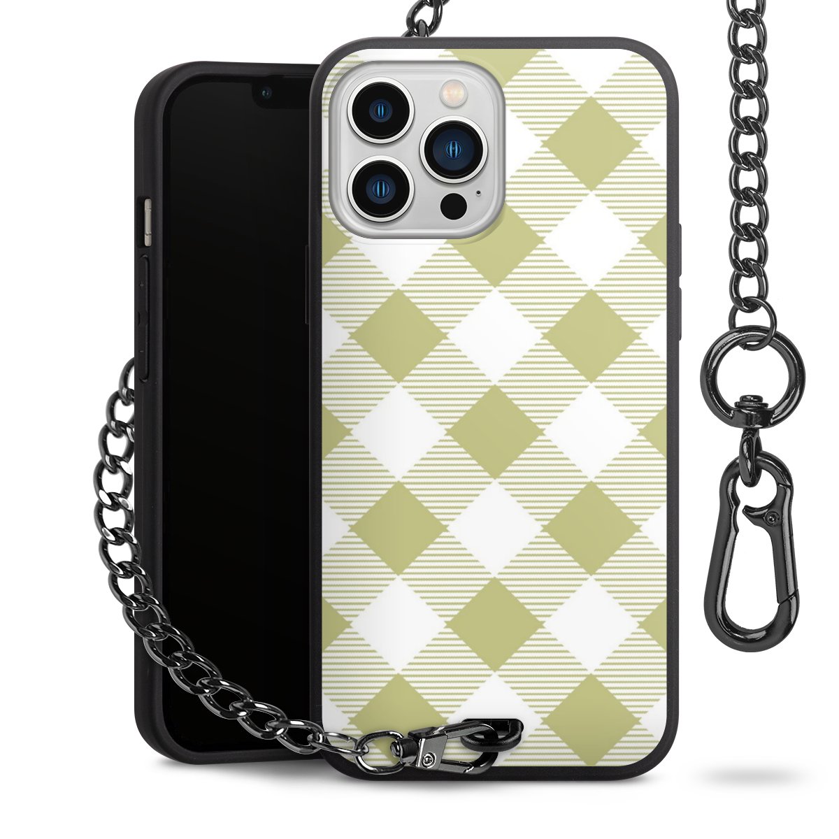 • Mattschwarze Handyhülle mit Metallkette