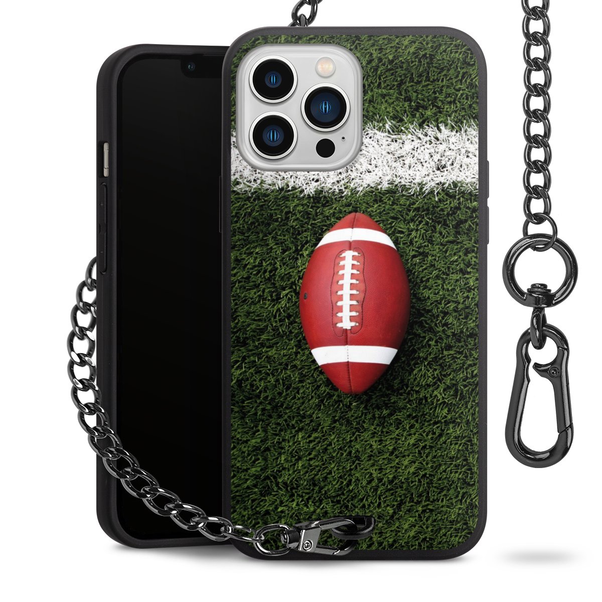 - Mattschwarze Handyhülle mit Metallkette