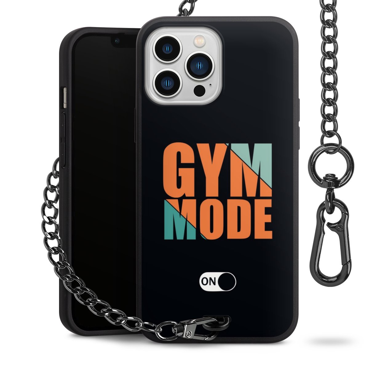 • Mattschwarze Handyhülle mit Metallkette