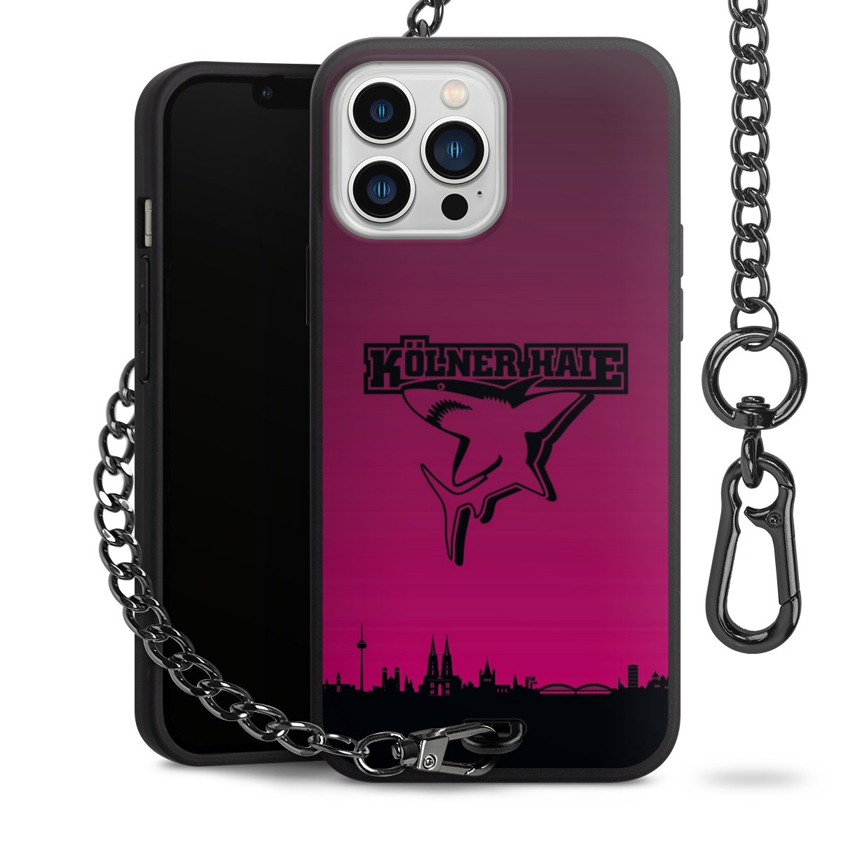 Die mattschwarze Silikon-Handyhülle besteht aus robustem TPU (thermoplastisches Polyurethan). Sie ist flexibel und schützt Dein Smartphone vor Stößen und Kratzern. Die Kette sowie der Karabinerhaken sind aus Metall in Gunmetal-Optik gefertigt. Für dieses Produkt kommen ausschließlich TÜV-geprüfte Materialien zum Einsatz.