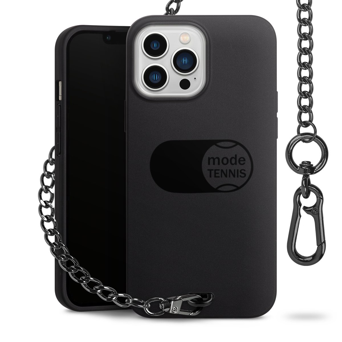 • Mattschwarze Handyhülle mit Metallkette