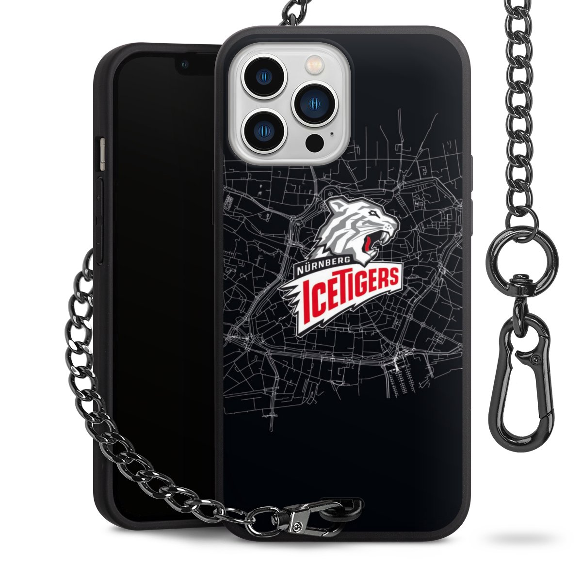 - Mattschwarze Handyhülle mit Metallkette