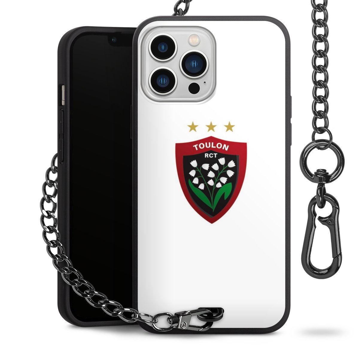 • Mattschwarze Handyhülle mit Metallkette