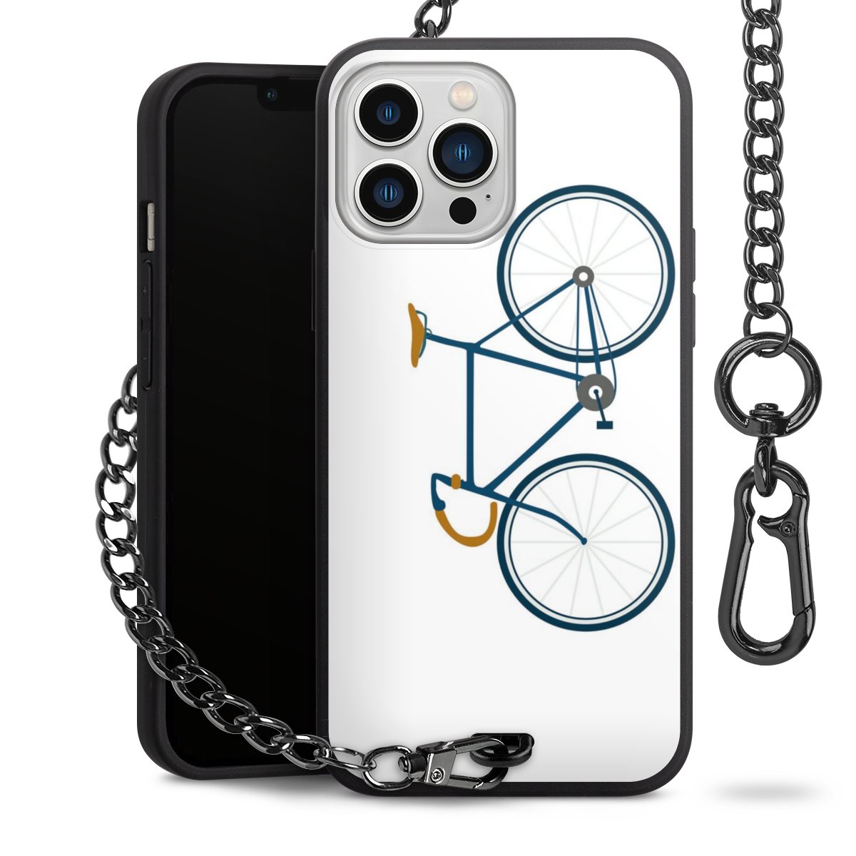 - Mattschwarze Handyhülle mit Metallkette
