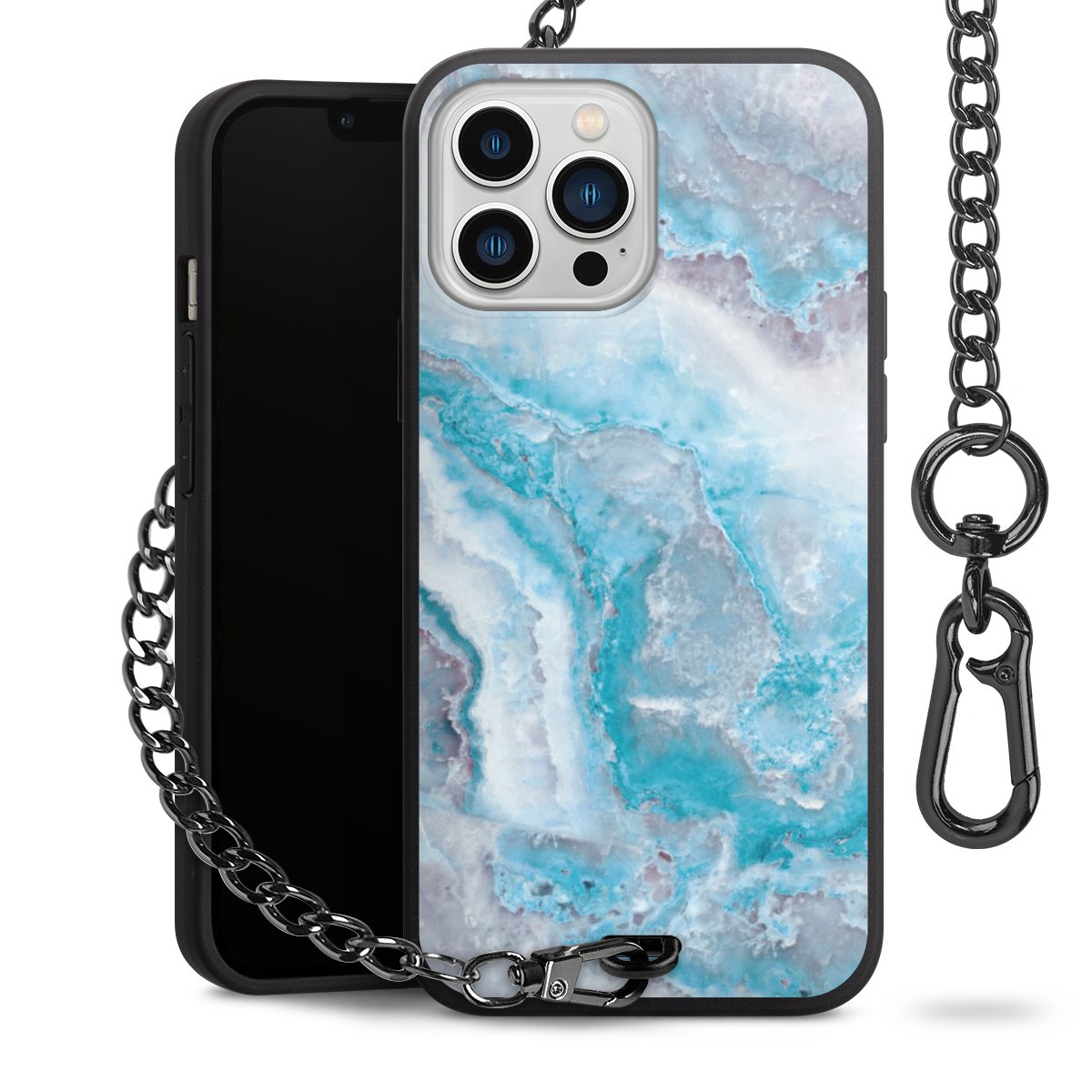 • Mattschwarze Handyhülle mit Metallkette