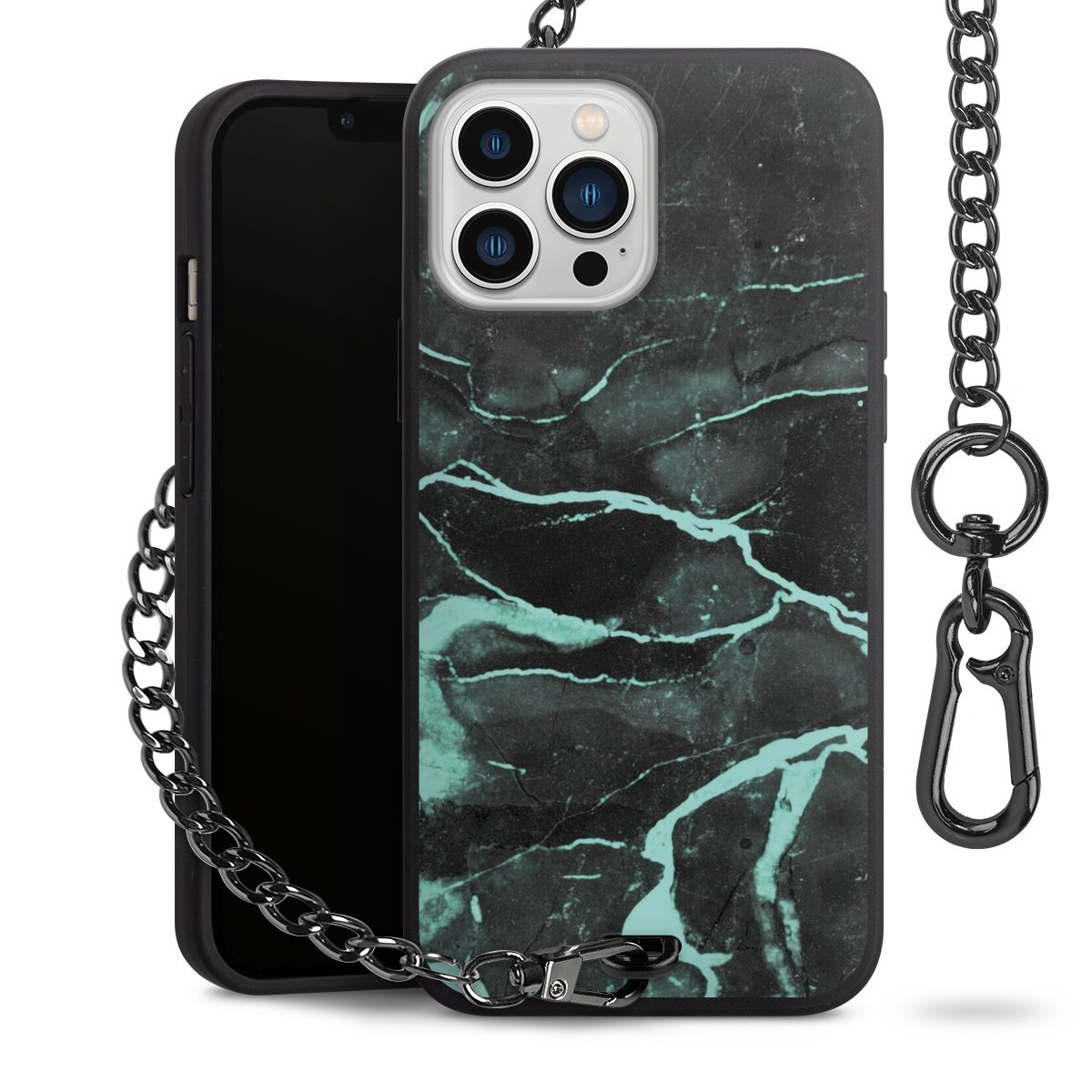 • Mattschwarze Handyhülle mit Metallkette