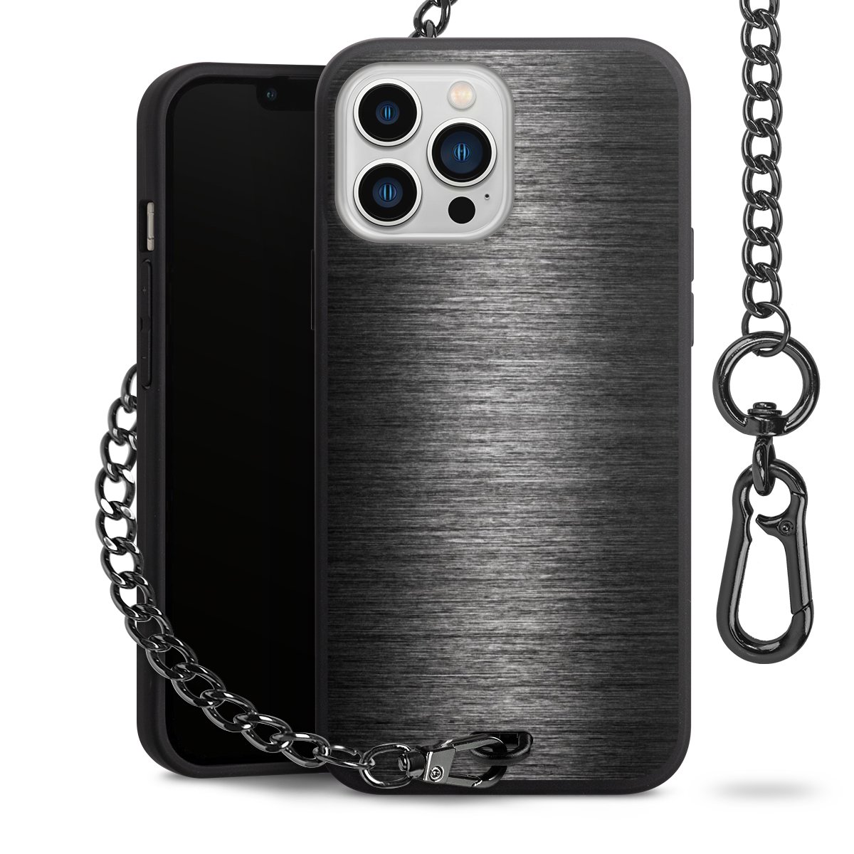 - Mattschwarze Handyhülle mit Metallkette