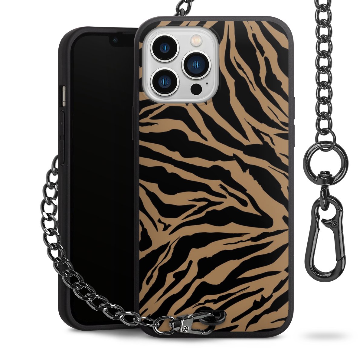 - Mattschwarze Handyhülle mit Metallkette