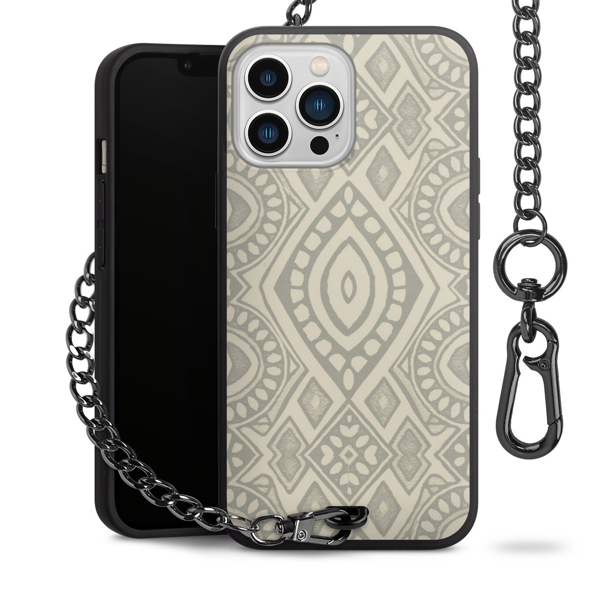 • Mattschwarze Handyhülle mit Metallkette