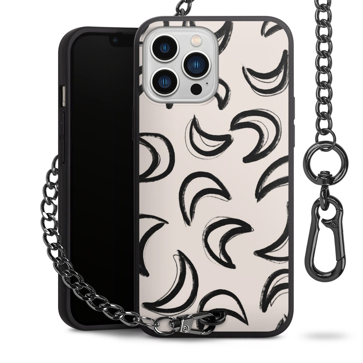 • Mattschwarze Handyhülle mit Metallkette