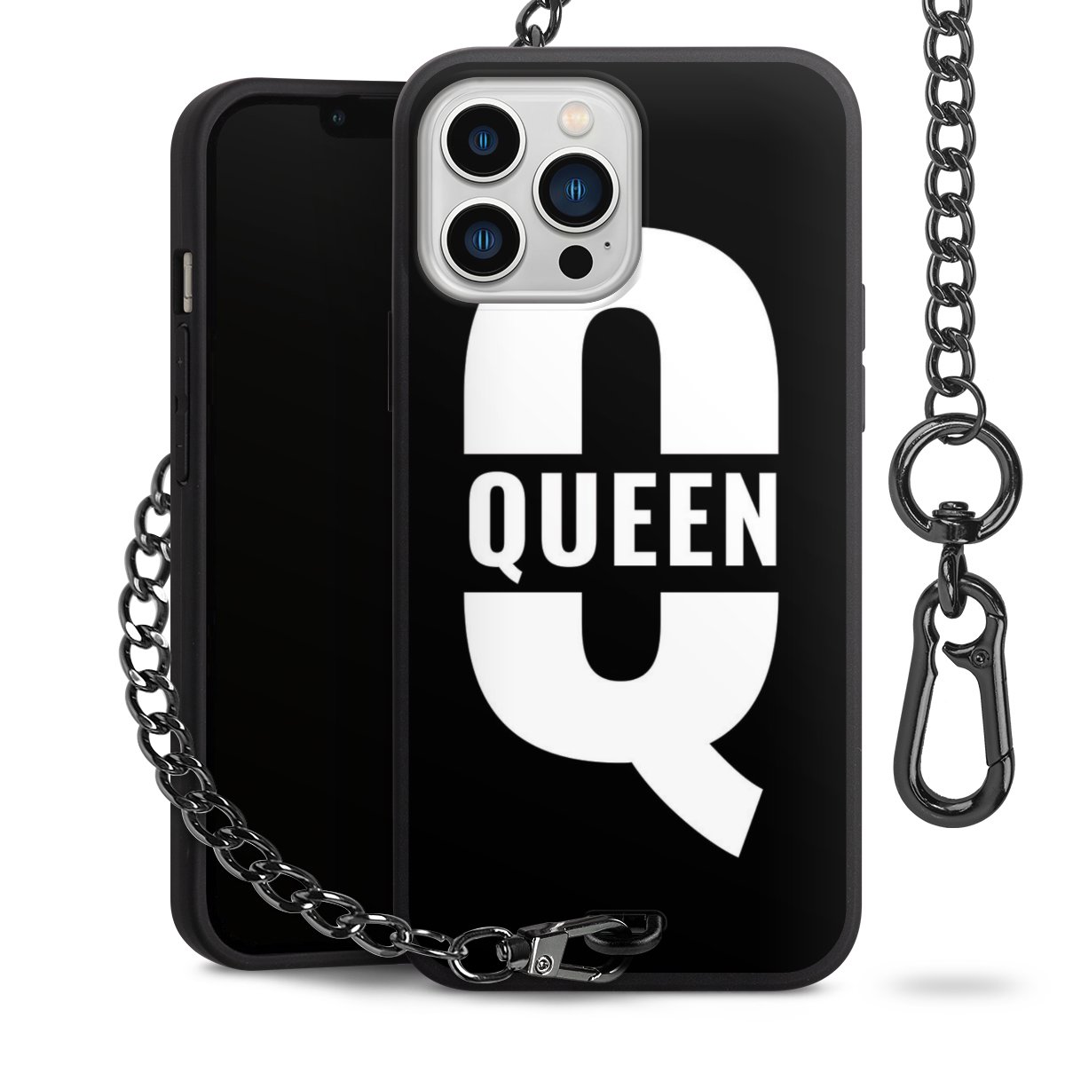- Mattschwarze Handyhülle mit Metallkette