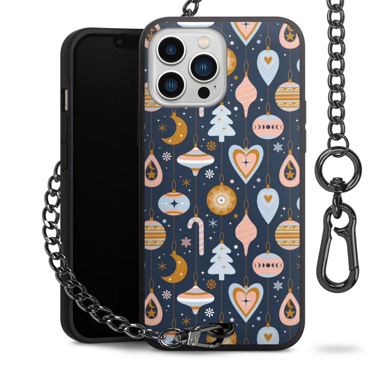 • Mattschwarze Handyhülle mit Metallkette
