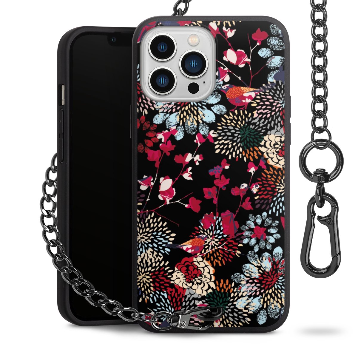 - Mattschwarze Handyhülle mit Metallkette