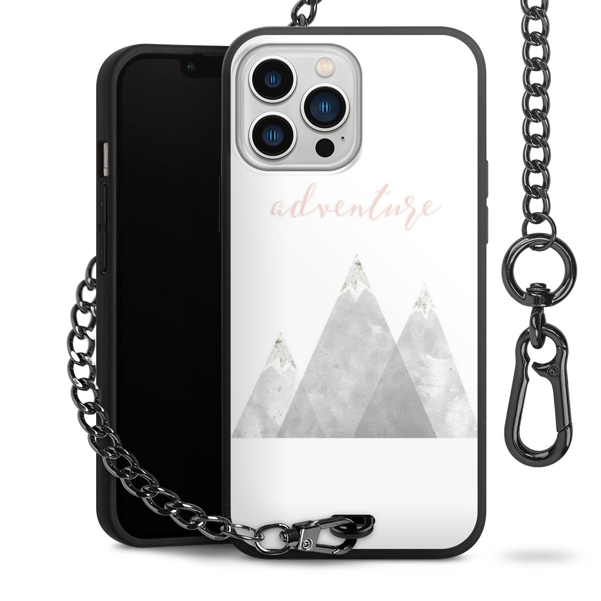 • Mattschwarze Handyhülle mit Metallkette