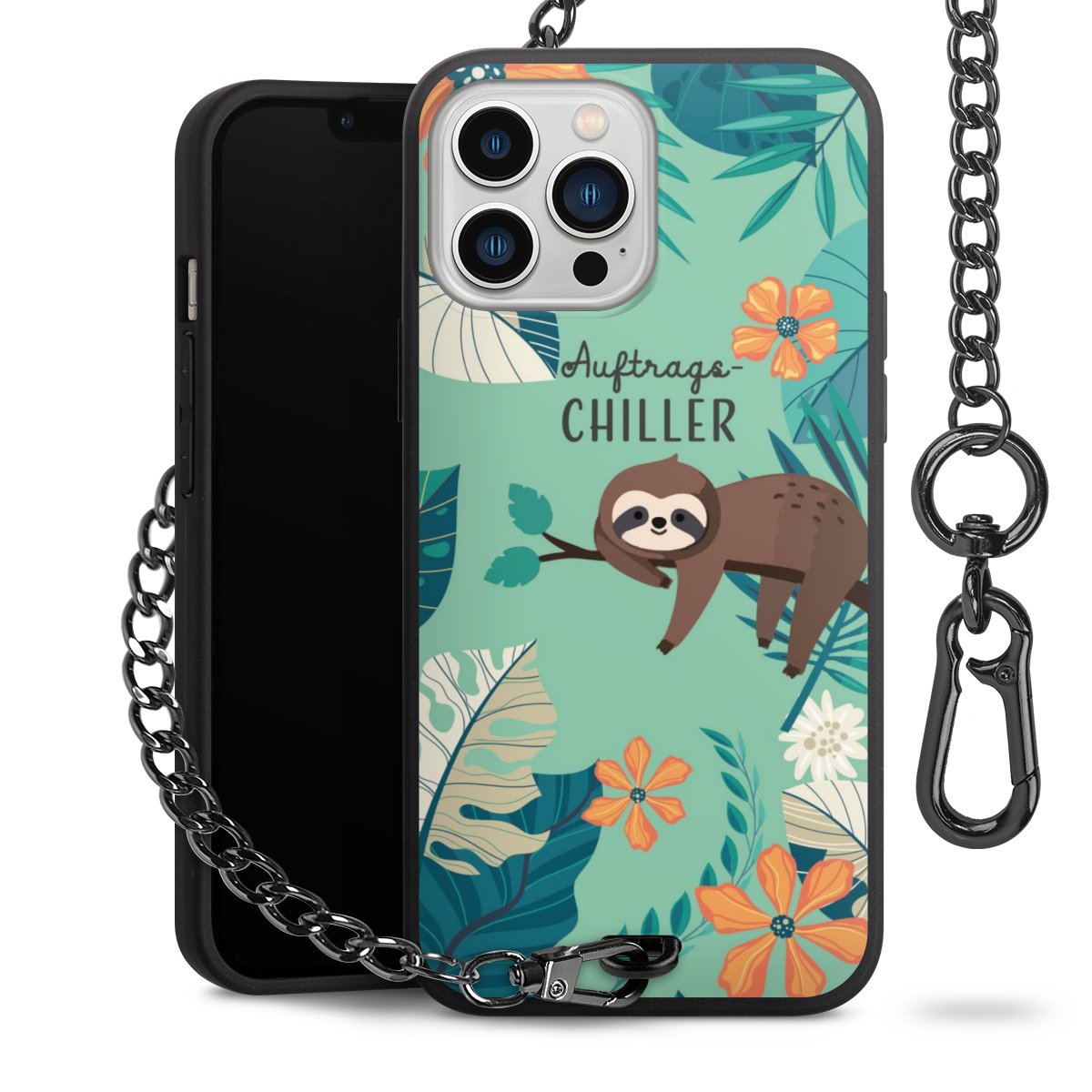 • Mattschwarze Handyhülle mit Metallkette