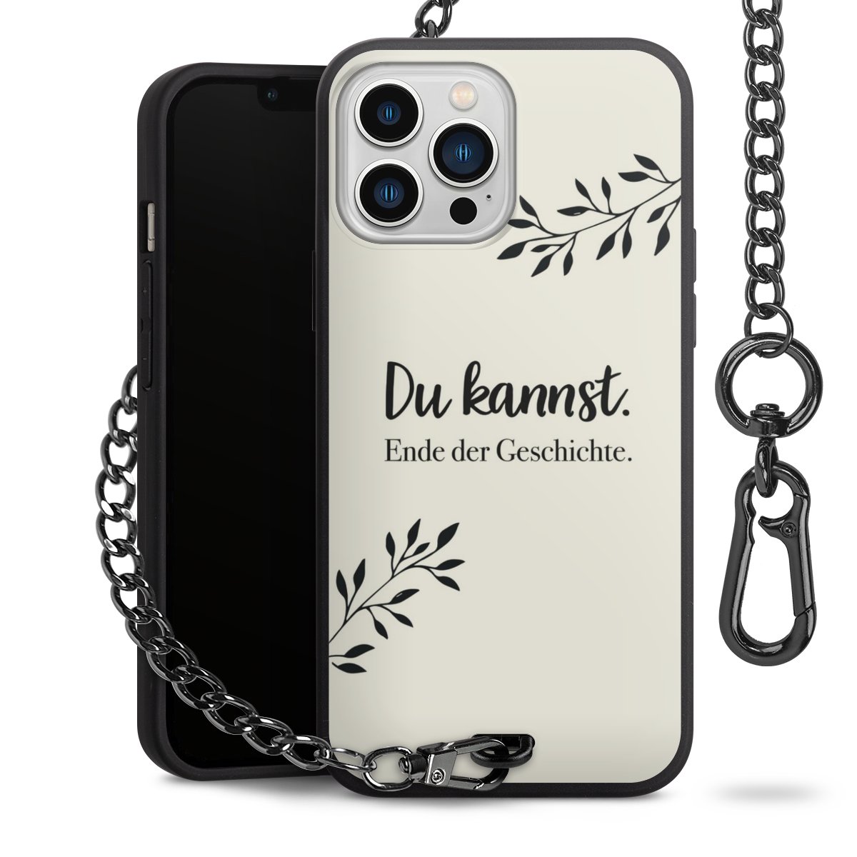 Die mattschwarze Silikon-Handyhülle besteht aus robustem TPU (thermoplastisches Polyurethan). Sie ist flexibel und schützt Dein Smartphone vor Stößen und Kratzern. Die Kette sowie der Karabinerhaken sind aus Metall in Gunmetal-Optik gefertigt. Für dieses Produkt kommen ausschließlich TÜV-geprüfte Materialien zum Einsatz.