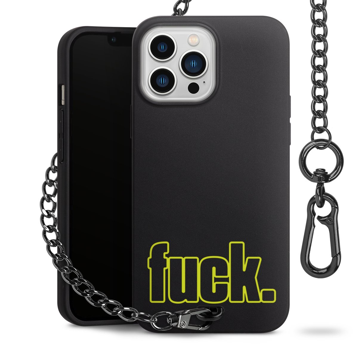 Die mattschwarze Silikon-Handyhülle besteht aus robustem TPU (thermoplastisches Polyurethan). Sie ist flexibel und schützt Dein Smartphone vor Stößen und Kratzern. Die Kette sowie der Karabinerhaken sind aus Metall in Gunmetal-Optik gefertigt. Für dieses Produkt kommen ausschließlich TÜV-geprüfte Materialien zum Einsatz.
