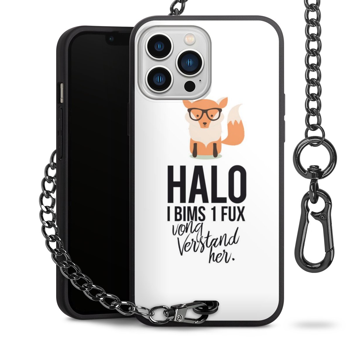 Die mattschwarze Silikon-Handyhülle besteht aus robustem TPU (thermoplastisches Polyurethan). Sie ist flexibel und schützt Dein Smartphone vor Stößen und Kratzern. Die Kette sowie der Karabinerhaken sind aus Metall in Gunmetal-Optik gefertigt. Für dieses Produkt kommen ausschließlich TÜV-geprüfte Materialien zum Einsatz.