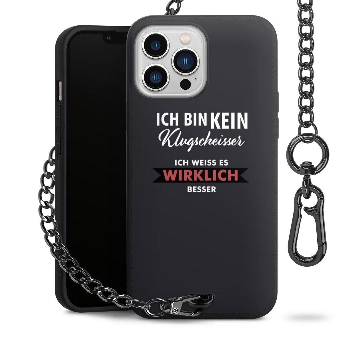 • Mattschwarze Handyhülle mit Metallkette