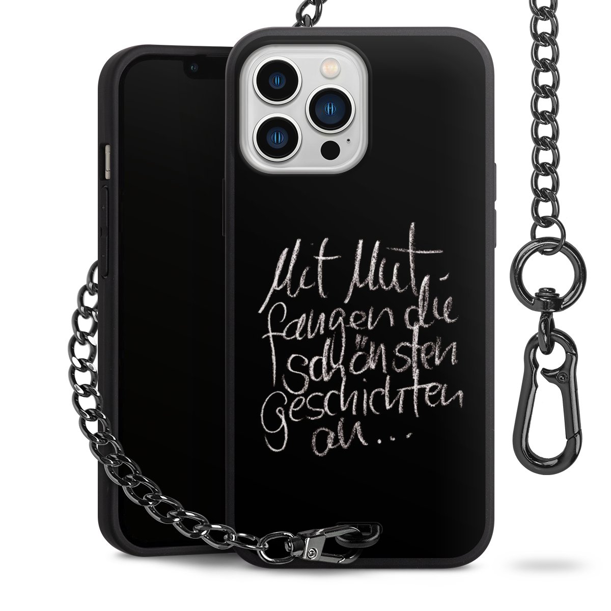 • Mattschwarze Handyhülle mit Metallkette