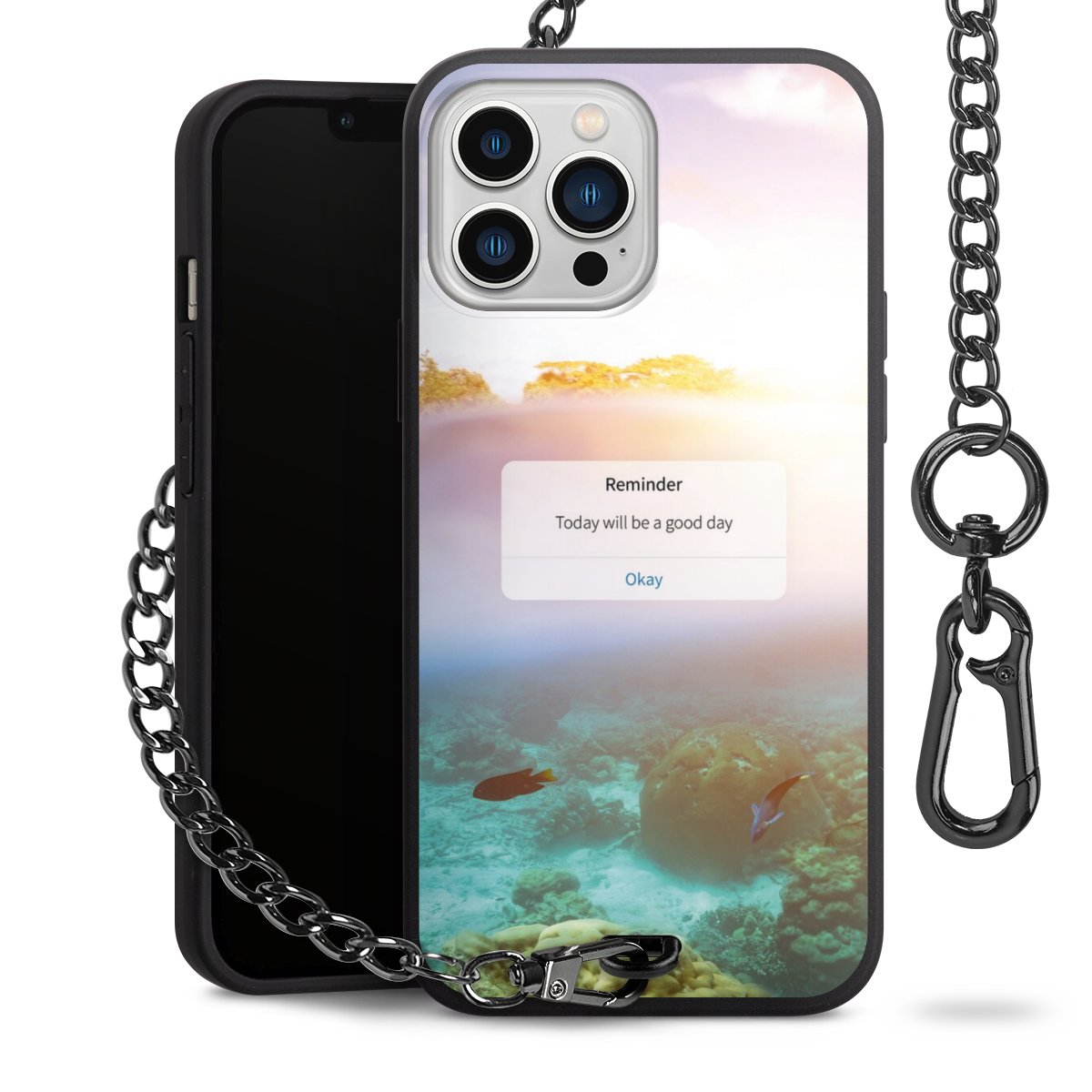 • Mattschwarze Handyhülle mit Metallkette