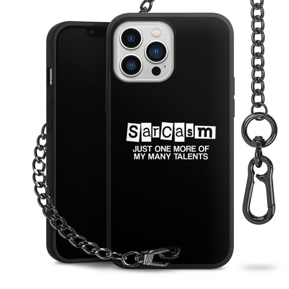 • Mattschwarze Handyhülle mit Metallkette