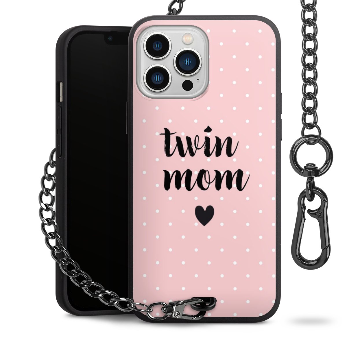 • Mattschwarze Handyhülle mit Metallkette
