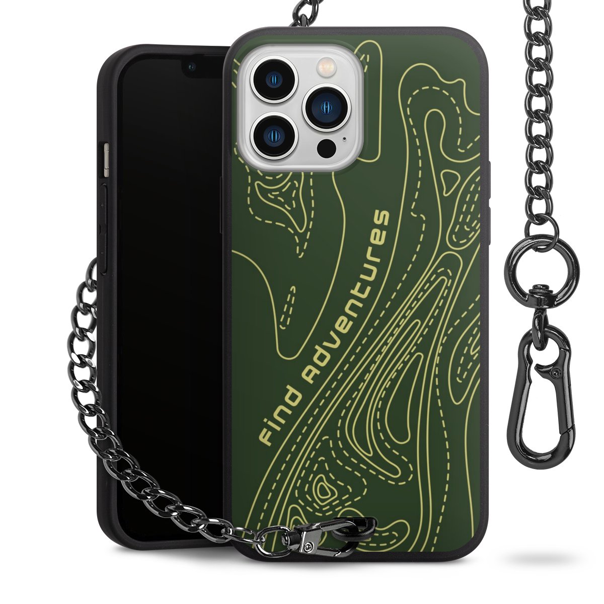 Die mattschwarze Silikon-Handyhülle besteht aus robustem TPU (thermoplastisches Polyurethan). Sie ist flexibel und schützt Dein Smartphone vor Stößen und Kratzern. Die Kette sowie der Karabinerhaken sind aus Metall in Gunmetal-Optik gefertigt. Für dieses Produkt kommen ausschließlich TÜV-geprüfte Materialien zum Einsatz.