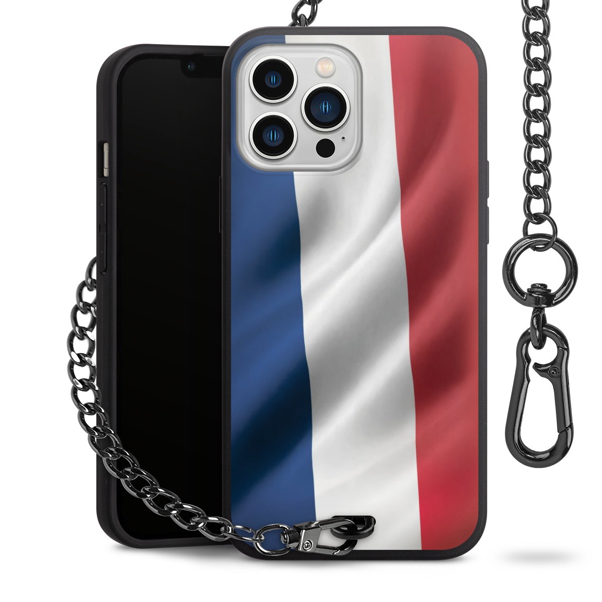 Die mattschwarze Silikon-Handyhülle besteht aus robustem TPU (thermoplastisches Polyurethan). Sie ist flexibel und schützt Dein Smartphone vor Stößen und Kratzern. Die Kette sowie der Karabinerhaken sind aus Metall in Gunmetal-Optik gefertigt. Für dieses Produkt kommen ausschließlich TÜV-geprüfte Materialien zum Einsatz.