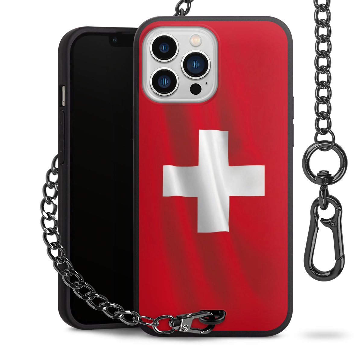 Die mattschwarze Silikon-Handyhülle besteht aus robustem TPU (thermoplastisches Polyurethan). Sie ist flexibel und schützt Dein Smartphone vor Stößen und Kratzern. Die Kette sowie der Karabinerhaken sind aus Metall in Gunmetal-Optik gefertigt. Für dieses Produkt kommen ausschließlich TÜV-geprüfte Materialien zum Einsatz.