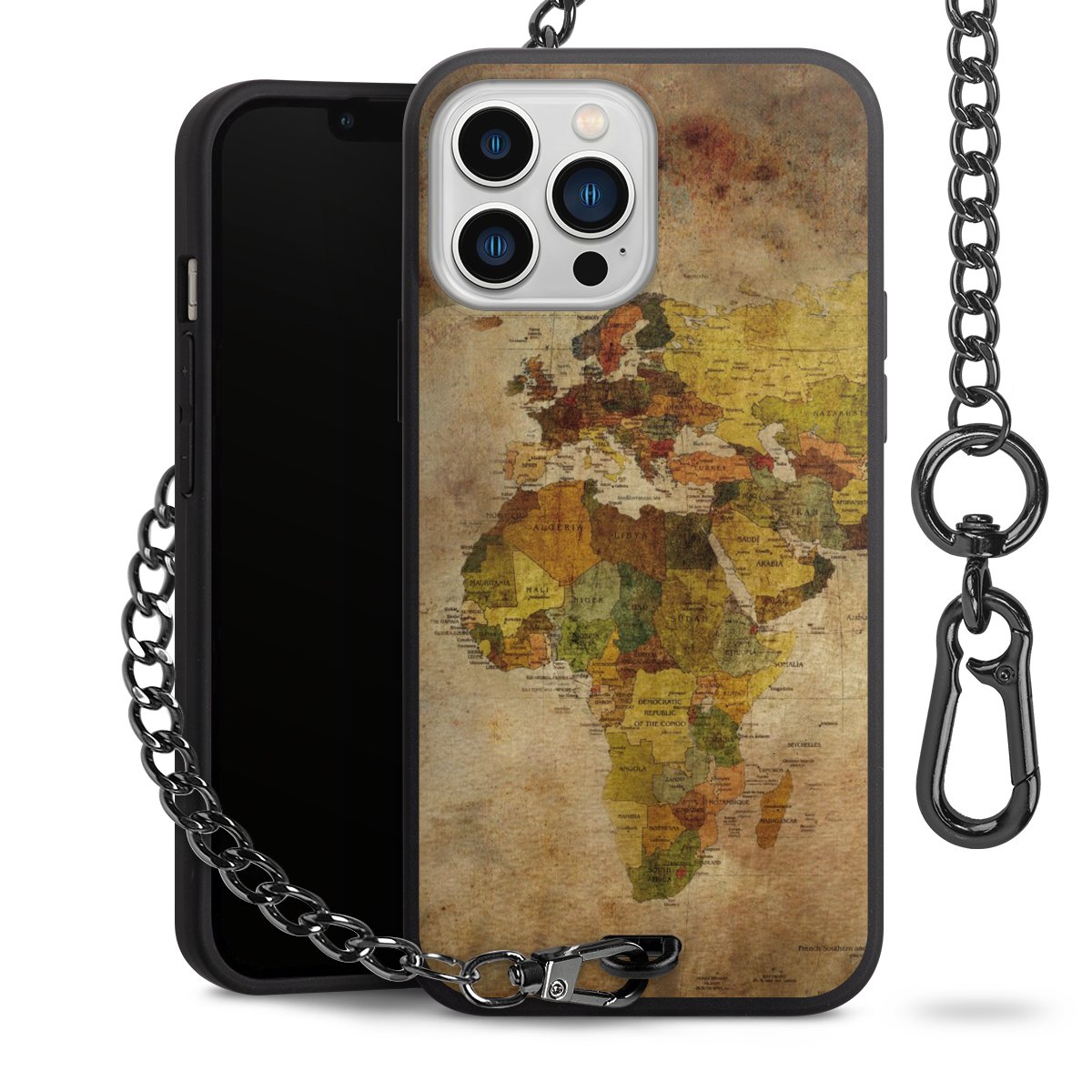 - Mattschwarze Handyhülle mit Metallkette