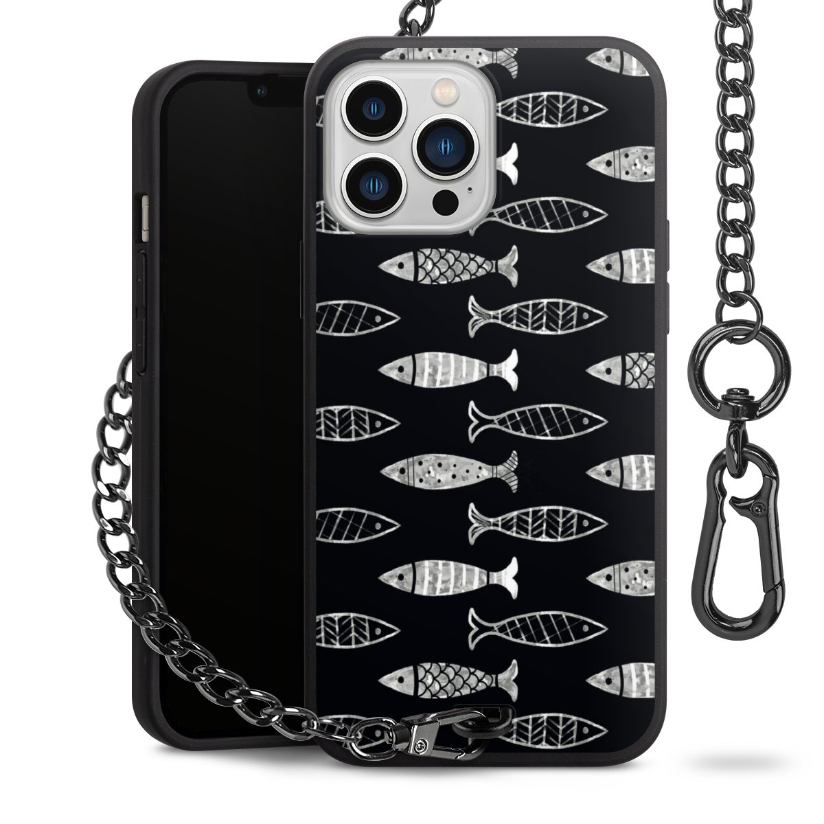 • Mattschwarze Handyhülle mit Metallkette
