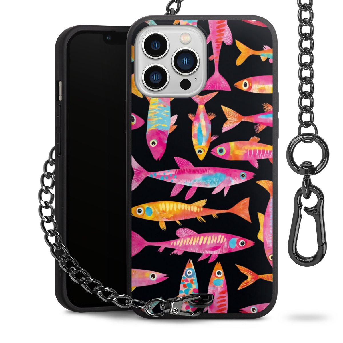 • Mattschwarze Handyhülle mit Metallkette