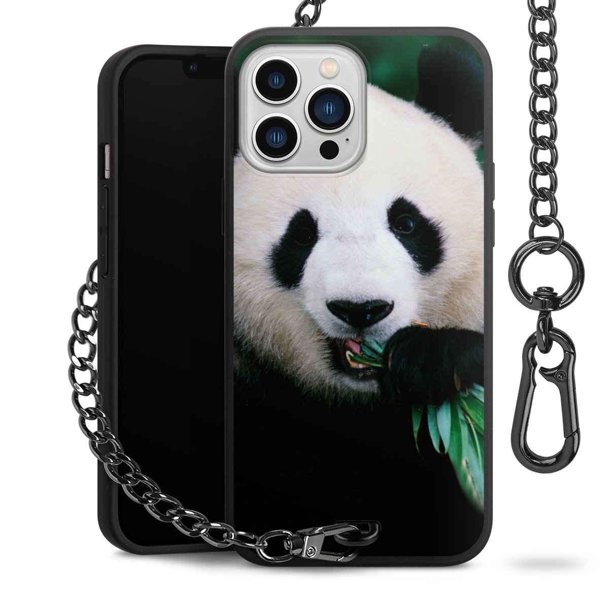 - Mattschwarze Handyhülle mit Metallkette