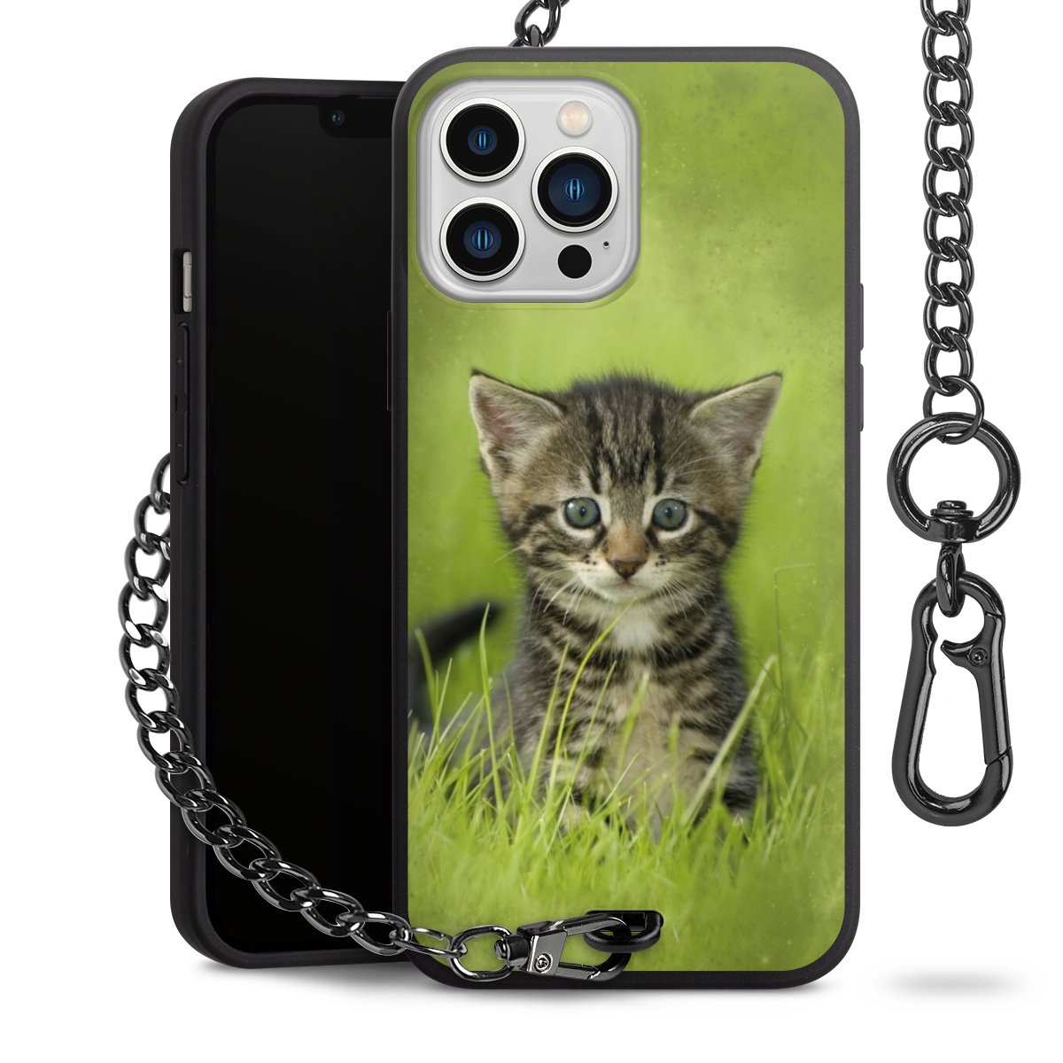 - Mattschwarze Handyhülle mit Metallkette