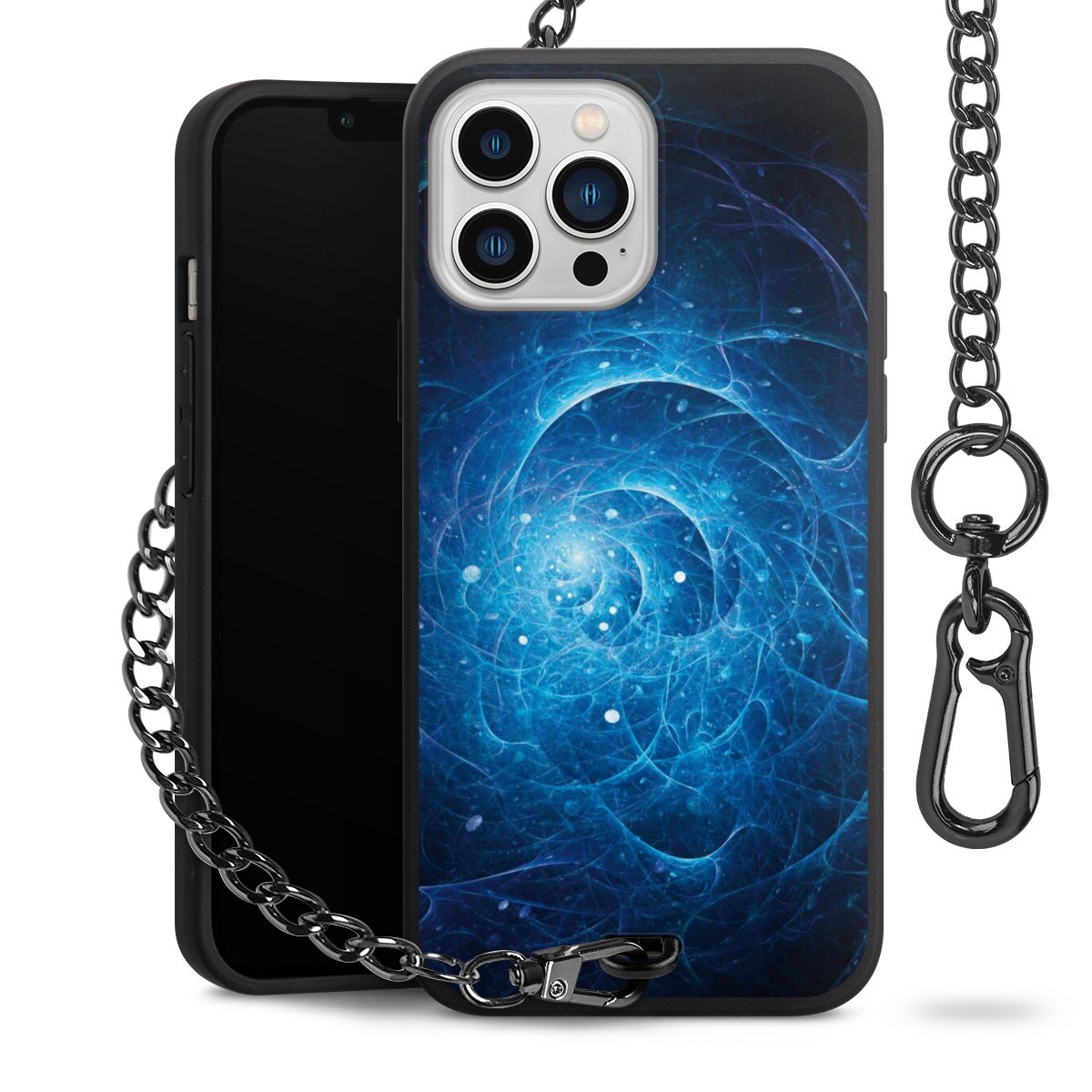 - Mattschwarze Handyhülle mit Metallkette