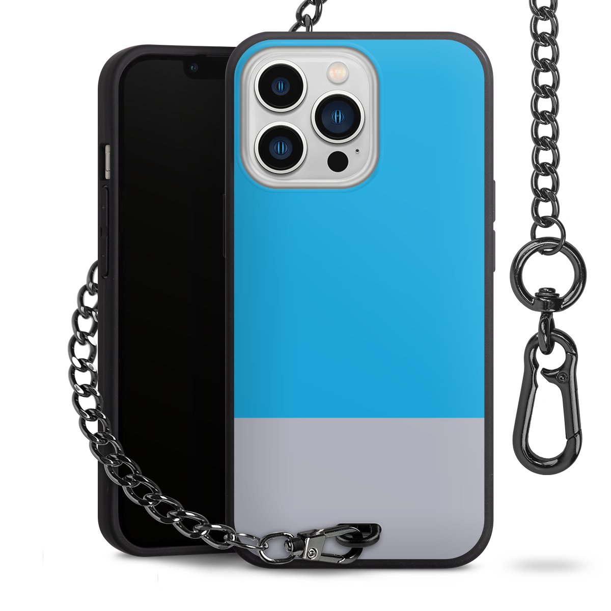 - Mattschwarze Handyhülle mit Metallkette