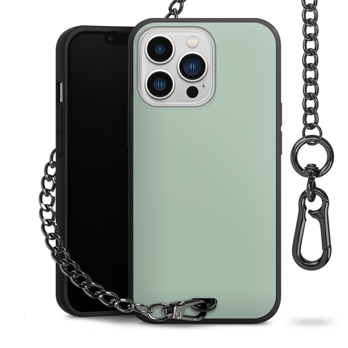 - Mattschwarze Handyhülle mit Metallkette