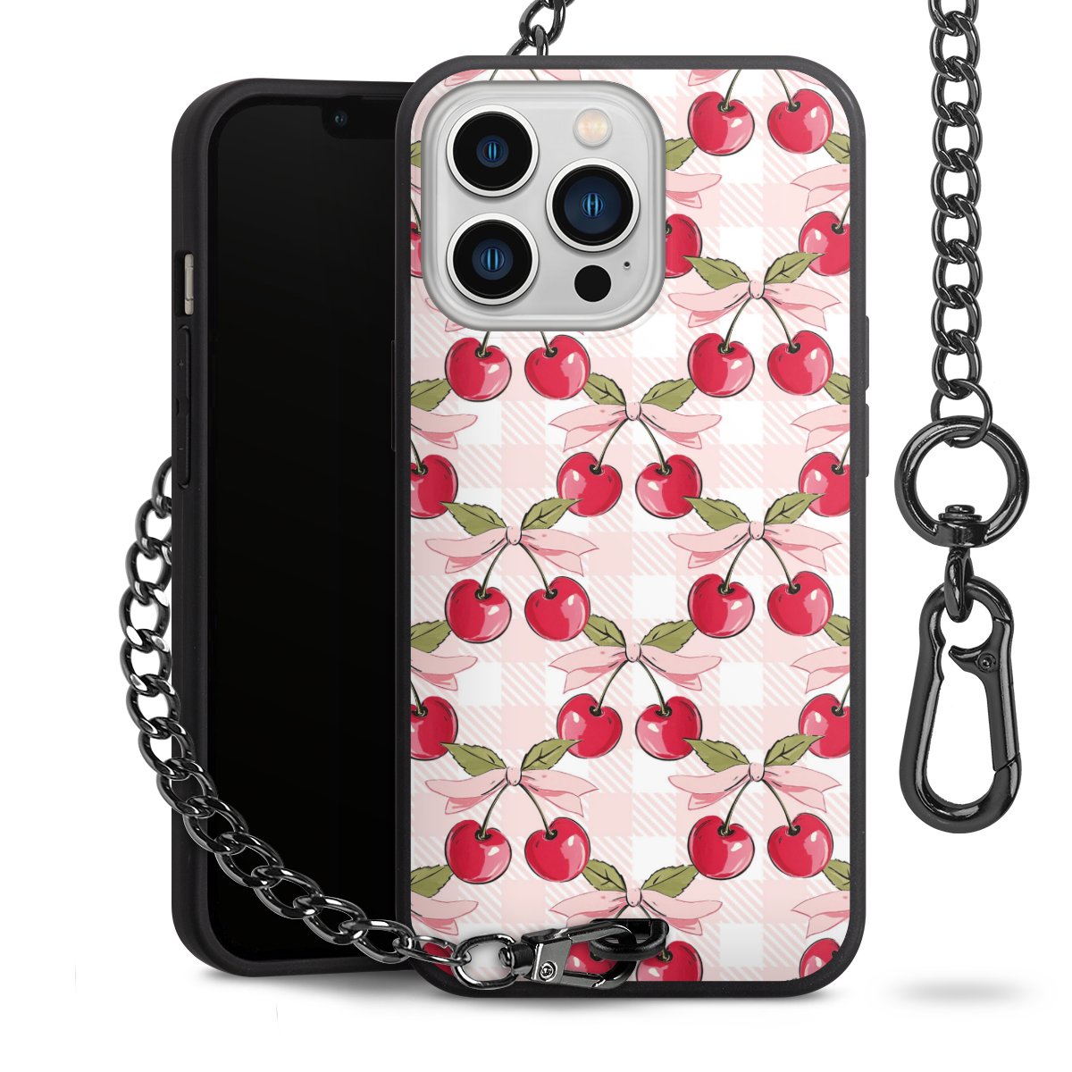 • Mattschwarze Handyhülle mit Metallkette