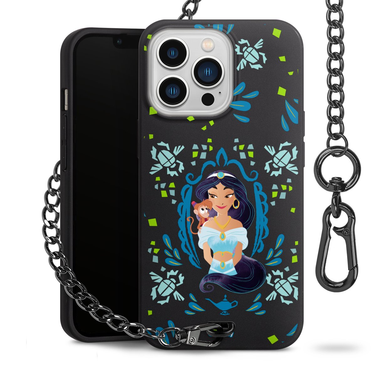 • Mattschwarze Handyhülle mit Metallkette