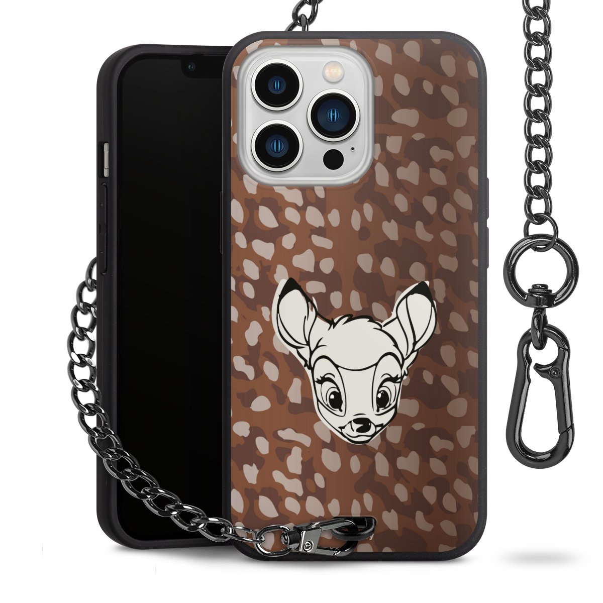 • Mattschwarze Handyhülle mit Metallkette