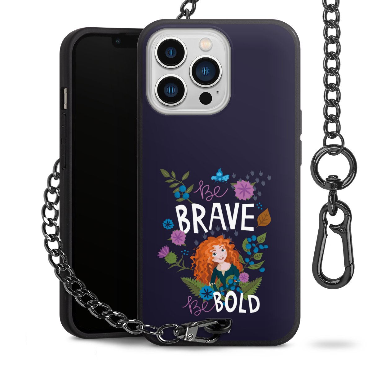 - Mattschwarze Handyhülle mit Metallkette