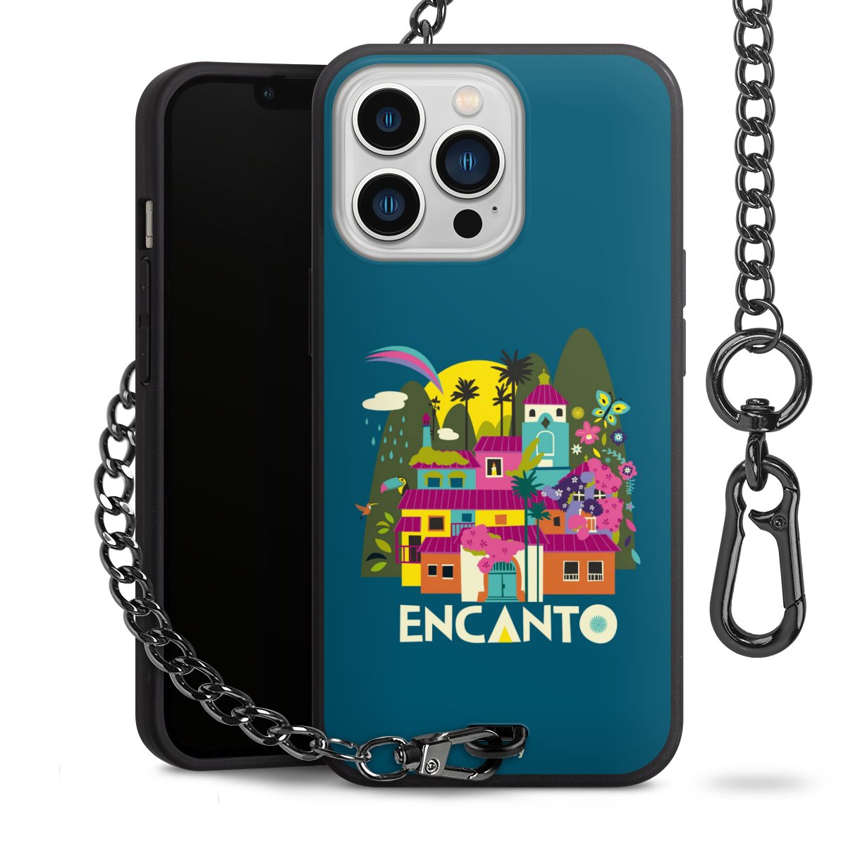 Die Handyhülle verfügt über eine mittig am unteren Rand platzierte Öse, an der die Metallkette stabil befestigt ist. Bestelle die Hülle einfach für Dein Smartphone-Modell, dann passt sie wie angegossen und Du brauchst sie bloß einmal anzudrücken. Handy in die Tasche, Karabiner an den Hosenbund – schon kann die Party starten.