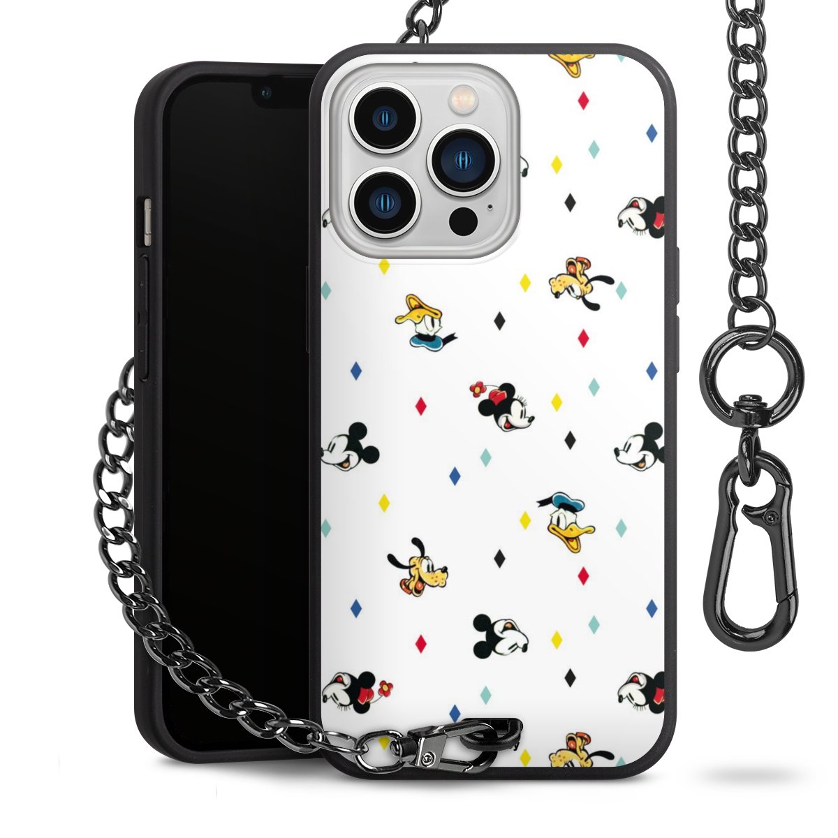• Mattschwarze Handyhülle mit Metallkette