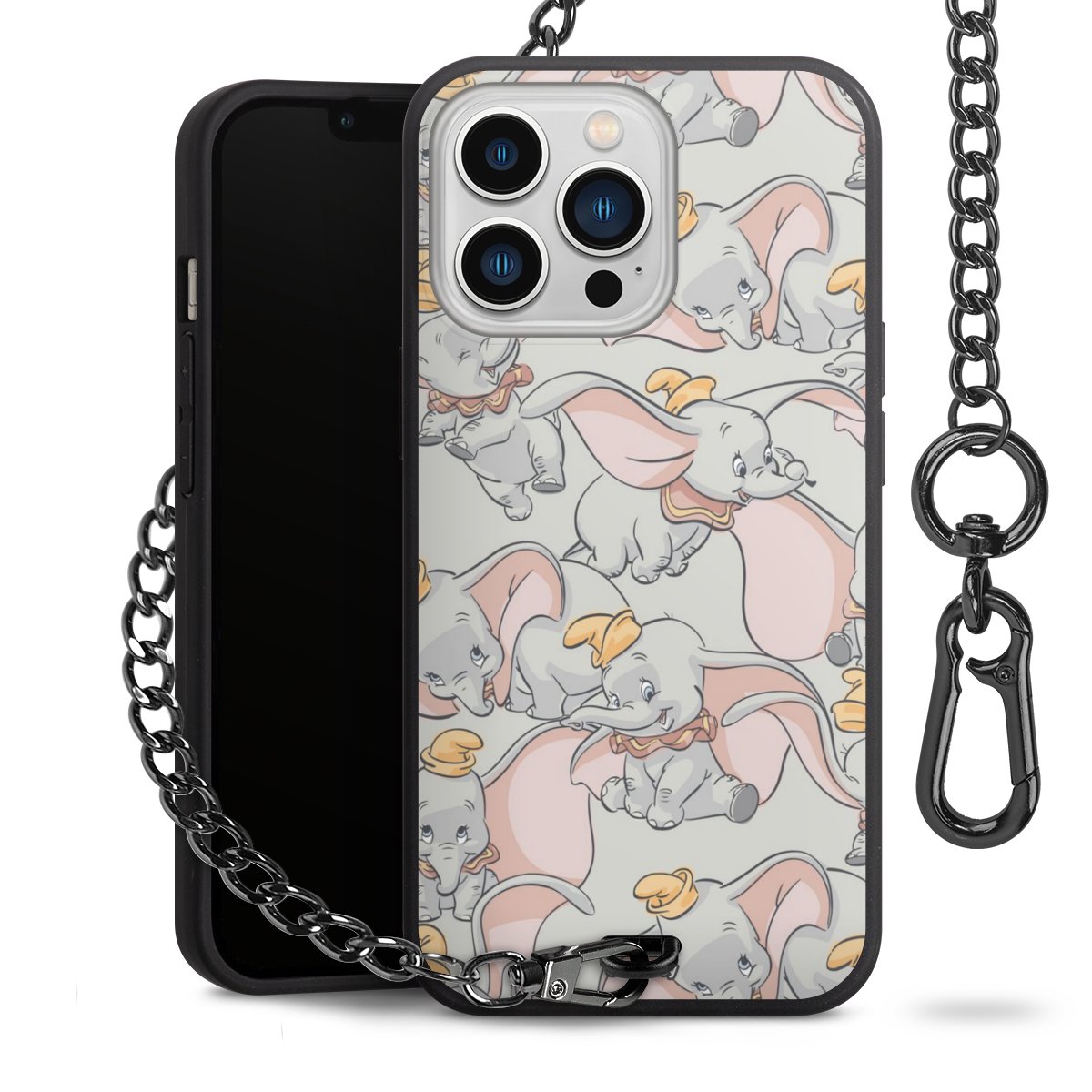 • Mattschwarze Handyhülle mit Metallkette