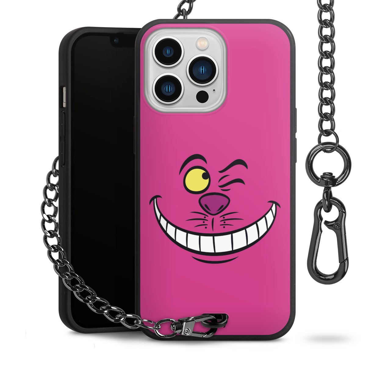 Die mattschwarze Silikon-Handyhülle besteht aus robustem TPU (thermoplastisches Polyurethan). Sie ist flexibel und schützt Dein Smartphone vor Stößen und Kratzern. Die Kette sowie der Karabinerhaken sind aus Metall in Gunmetal-Optik gefertigt. Für dieses Produkt kommen ausschließlich TÜV-geprüfte Materialien zum Einsatz.