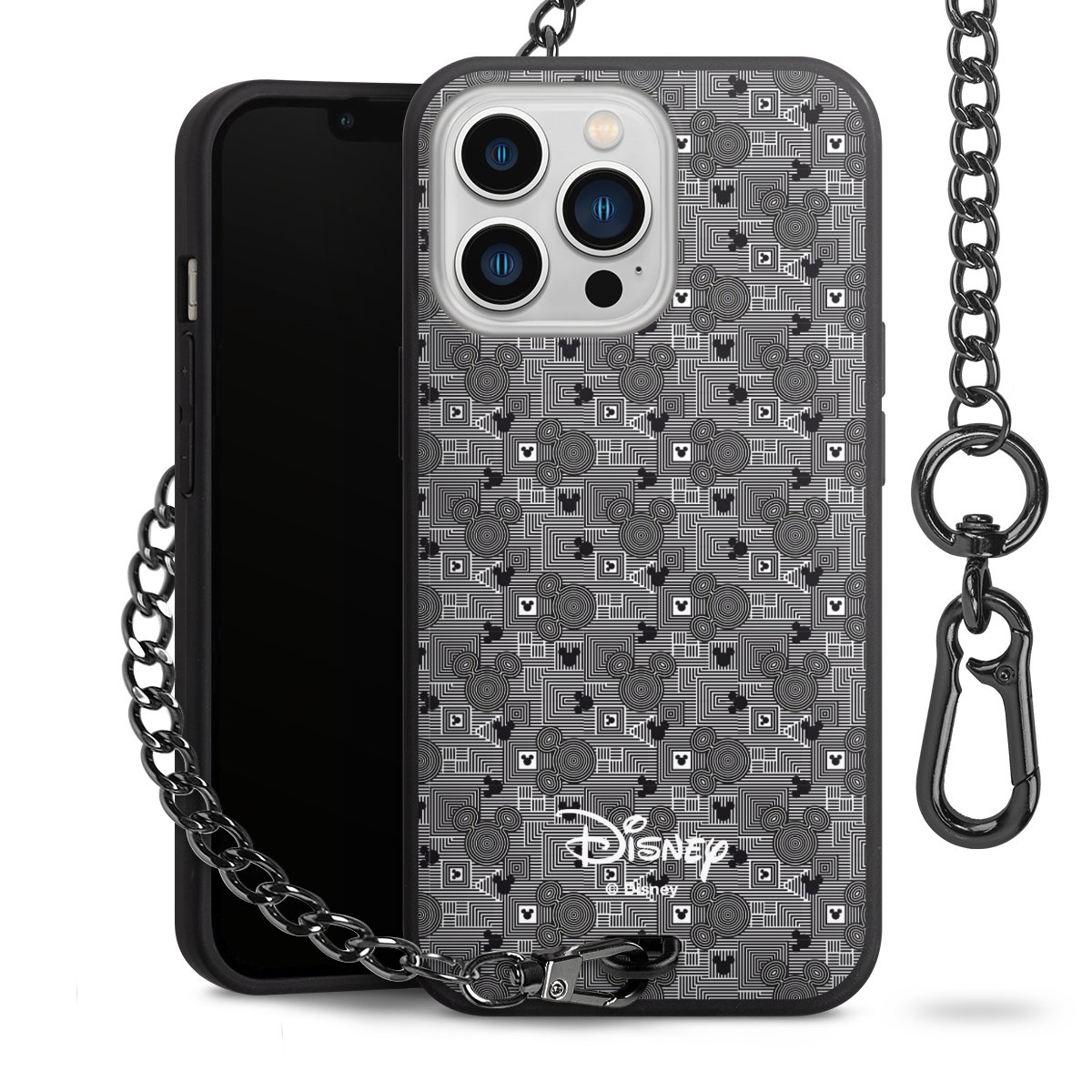• Mattschwarze Handyhülle mit Metallkette